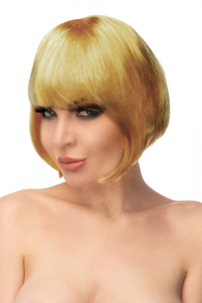 Парик "Джага-Джага Кин" - золотистое каре с челкой - отличное решение для различных вечеринок, косплея, фотосессии, интимного свидания!